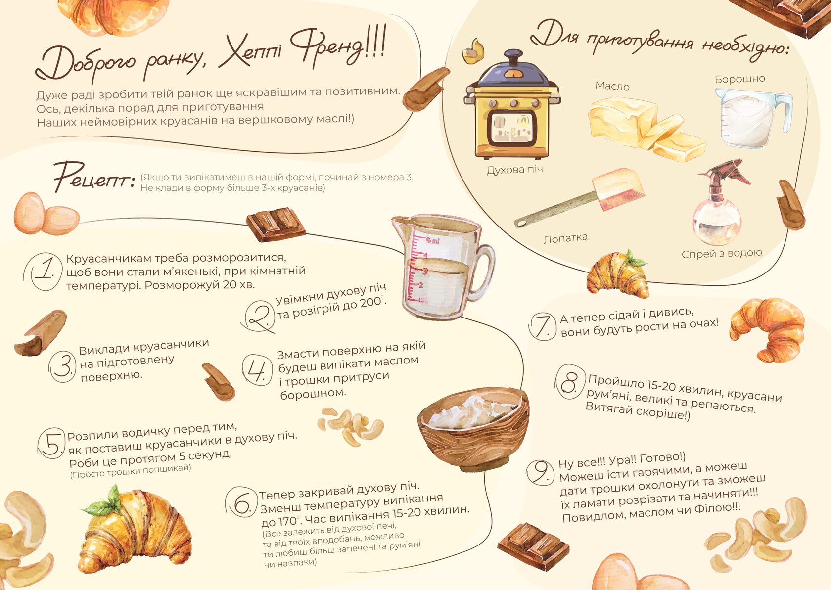 До кожного набору ми кладемо чітку інструкцію з приготування, щоб ваші круасанчики були неймовірні.